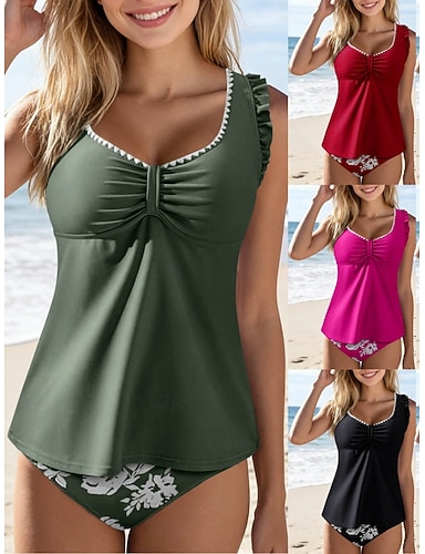Mulheres Normal Anti Atrito Maiô com estampa floral Maiôs Tankini oceano Floral Tropical 2 Peças Bojo Removível Boyleg Proteção Solar UV UPF50+ Elástico Sem Manga Surfe Canoagem Esportes Aquáticos