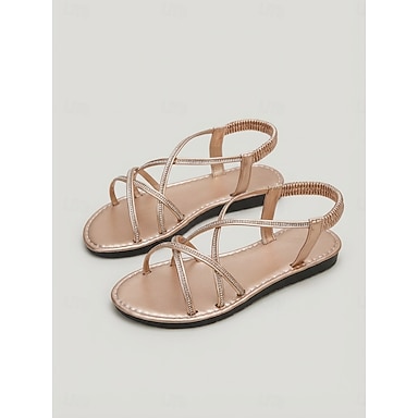 Sandálias femininas rasteiras e confortáveis com tiras, bico aberto, elástico no calcanhar, ideais para festas no jardim e eventos ao ar livre. &passeios de verão