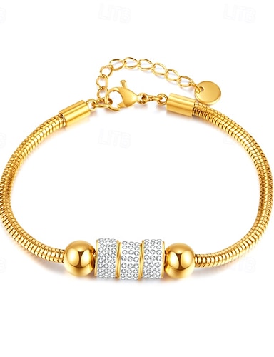 Mulheres Bracelete Corrente Grossa Bola Moda Aço Titânio Pulseira de jóias Dourado Para Feriado Aniversário