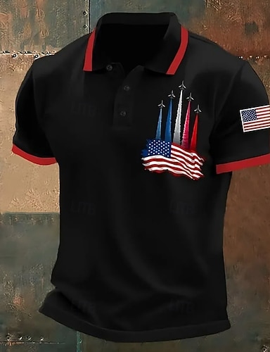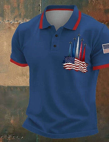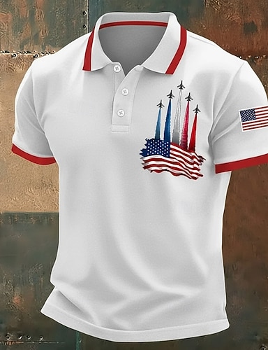 4 de julho de 2026 250º Homens American US Flag Pólo Manga Curta Colarinho polo Casual Diário Roupa Esportiva Casual / Diário Festival Botões Verão Branco Azul Laranja