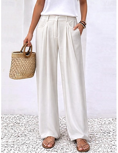 Mulheres Perna larga chinês Elegante Moda Roupa de rua Comprimento total Cintura Alta Tecido Bolsos Confortável Conforto Macio Micro-Elástica Diário Ao ar livre Rua Branco Verão Primavera Outono