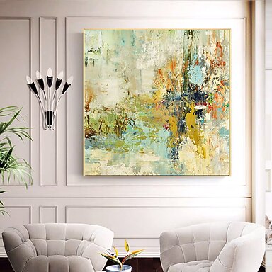 Pintura a óleo feita à mão em tela, arte de parede, decoração moderna, quadrada, abstrata para decoração de sala de jantar, pintura enrolada, sem moldura, sem esticar