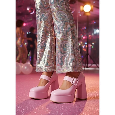 Sandálias plataforma rosa femininas com tira de fivela – estilo retrô chique para o Dia dos Namorados, festas e ocasiões especiais.