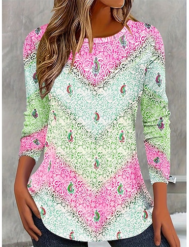 Mulheres Camiseta Imprimir Gráfico Geométrica Abstrato Vintage Moda à moda Manga Longa Gola Redonda Decote Redondo Tops regulares Diário Final de semana Rosa Primavera Outono Inverno