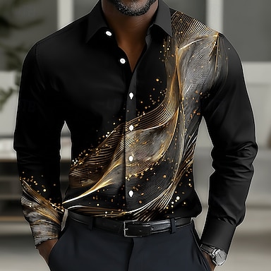 Homens Geométrica Gradiente Ondas Camisa Social camisa de botão Camisa social casual Manga Longa Moda Casual Férias Diário Streetwear Verão Primavera Aberto para a Lateral Impressão 3D camisas de