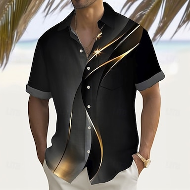 Homens Geométrica Riscas Cor gradiente Camisa Social camisa de verão camisa de botão Manga Curta Moda Casual Ao ar livre Férias Dia a Dia Verão Primavera Aberto para a Lateral Impressão 3D camisas de