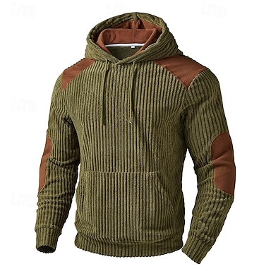 Homens Moletom Estacionar Malha canelada Verde Tropa Com Capuz Tecido Patchwork bolso canguru Textura Casual Diário Desportos e Ar livre Vintage Legal Roupa de Esporte Primavera & Outono Roupa