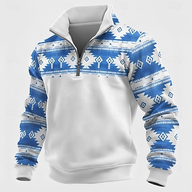 Homens Tribal Moletom Étnico Vintage retrô Colarinho Chinês Ao ar livre Trabalho Presente Azul Azul Céu Amarelo Vermelho Zíper Outono Inverno Designer S M L XL XXL XXXL