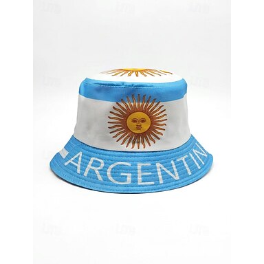 Chapéu bucket masculino reversível em poliéster, estampa da bandeira da Argentina, chapéu leve para torcedores de futebol, ideal para dias de jogo, esportes casuais e atividades ao ar livre.