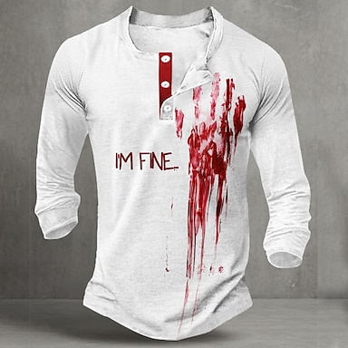 Homens Respingos de sangue Engraçado Manchas de sangue Camisa Henley Manga Longa Moda Estilo bonito Diário Casual Feriado Para Noite Primavera & Outono Todas as Estações Branco Henley Camiseta Henley