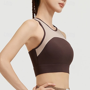 Mulheres Sustentação Média Regata com Bojo Sutiã de corrida Delgado Good Top Acolchoado Academia Exercício Corrida Leve Elástico Respirável Preto Branco Azul Retalhos