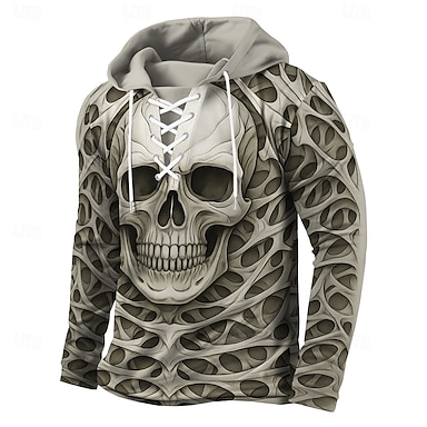 Homens Gráfico Caveiras Moletom Moda Diário Casual Manga Longa Com Capuz Ao ar livre Férias Streetwear Azul Cinzento Com Cordão Estampado Outono Inverno Designer S M L XL 2XL 3XL