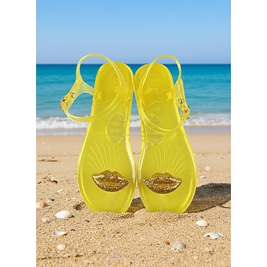 Sandálias femininas transparentes de plástico com tira no tornozelo – calçado leve e impermeável para férias na praia, com um design fofo de lábios, ideal para usar em resorts de verão, piscina e