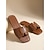 sandálias femininas de couro sintético marrom – calçados estilosos com tiras enfeitadas e bico aberto para relaxamento feminino na piscina, férias de verão e recados casuais