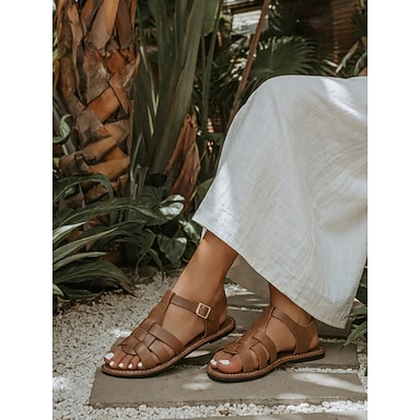 sandálias femininas boho - chiques trançadas marrons - calçados baixos, com tiras no tornozelo para caminhadas na praia, mercados ao ar livre e dias casuais de verão