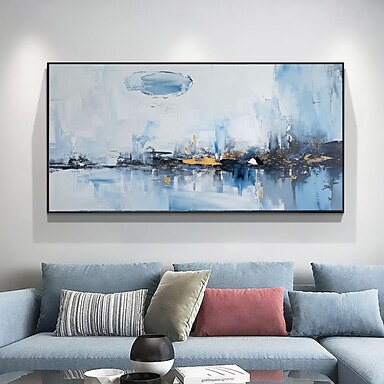pintura a óleo artesanal lona arte de parede decoração moderna textura abstrata paisagem de montanha azul para casa decoração de sala de estar pintura enrolada sem moldura e não esticada