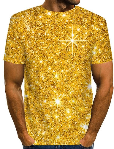 Homens Camisa Social camisa de botão Manga Curta Moda Casual Diário Feriado Verão Aberto para a Lateral Botões Imprimir Dourado