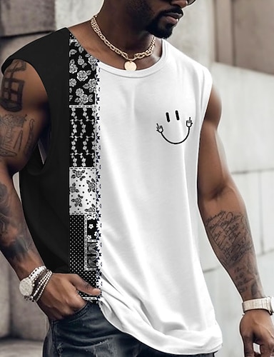 Homens Gráfico Rosto sorridente Top de colete Camiseta masculina sem mangas Alças Camiseta Impressão 3D Gola Redonda Camisa Moda Designer Músculo Diário Esportes Ginásio Preto Branco Azul Marinha