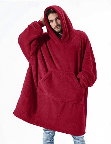 Homens Pijamas Roupa de Dormir Roupão Tecido Moda à moda Clássico Diário Casa De Cama Sherpa Poliéster Térmico / Quente Conforto Macio Capuz Manga Longa Outono Inverno Azul Preto