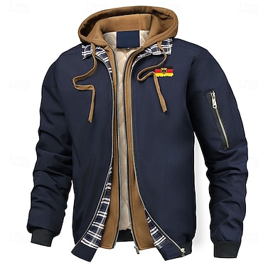 Homens Gráfico Bandeira Alemanha Casaco de inverno Acolchoado Jaqueta com capuz Térmico / Quente Esportivo Casual Ao ar livre Dia a Dia Zip Up Capuz ajustável com cordão Casaco forrado xadrez Outono