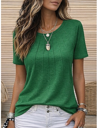 Mulheres Camiseta T-shirt Franzido Tecido Moda à moda Clássico Manga Curta Gola Redonda Tops regulares Diário Para Noite Final de semana Azul Rosa Vinho Verde Cinzento Escuro Verão Primavera