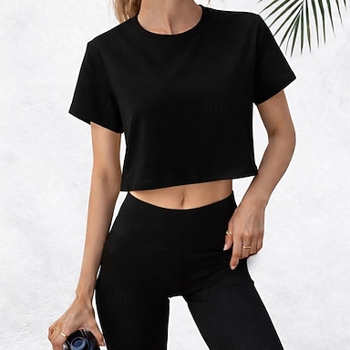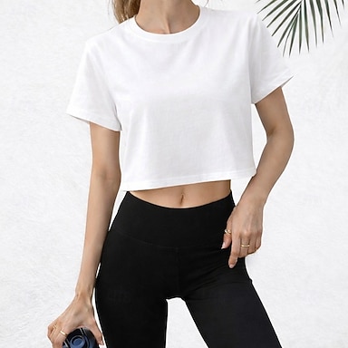 Mulheres Camiseta T-shirt Tecido Moda à moda Clássico Manga Curta Ombro a Ombro Tops regulares Diário Para Noite Final de semana Azul Preto Branco Rosa Damasco Verão Primavera