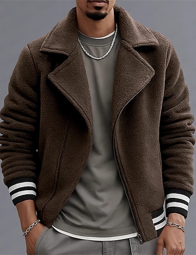 Homens Jaqueta de Inverno Jaqueta sherpa Jaqueta casual Diário Ao ar livre Quente Bolsos Outono Inverno Bloco de cor Roupa de rua à moda Entalhe Padrão cáqui Casaco