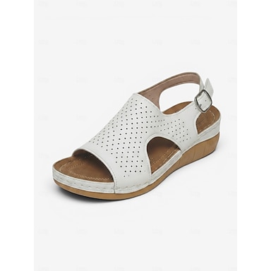 Sandálias femininas rosa-claro perfuradas com plataforma – sapatos de verão confortáveis com bico aberto e tira com fivela, ideais para praia, viagens e uso casual.