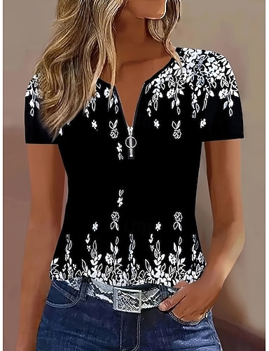 Páscoa Mulheres Camiseta Quarter Zip Floral Gráfico Plantas Vintage Tropical Havaiana Manga Curta Gola Redonda Tops regulares casamento na praia Diário Esportes Azul Preto Rosa Verão Primavera