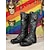 Sandálias plataforma femininas com estampa de arco-íris e detalhes em cristal – sandálias boho para usar na praia durante as férias de verão.