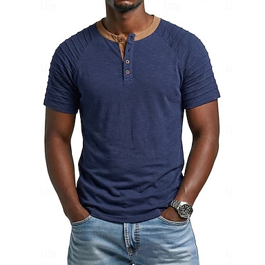 Homens Camisa Henley Camisetas Manga Curta Retalhos Moda Designer Casual Franzido Botões Henley Casual Diário Ao ar livre Verão Primavera Todas as Estações Preto Azul Marinha Azul Royal Camiseta