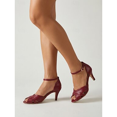 Sapatos de salto alto femininos vintage vermelho vinho dos anos 50 com bico aberto - sapatos retrô de salto alto com tira ajustável no tornozelo, ideais para festas de coquetel, eventos formais e trabalho.