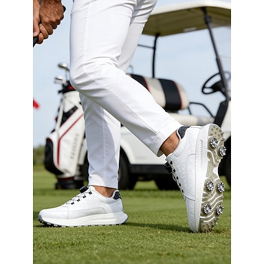 Sapatos de golfe masculinos premium brancos com sola de alto desempenho – elegantes e confortáveis para jogadores de golfe profissionais.
