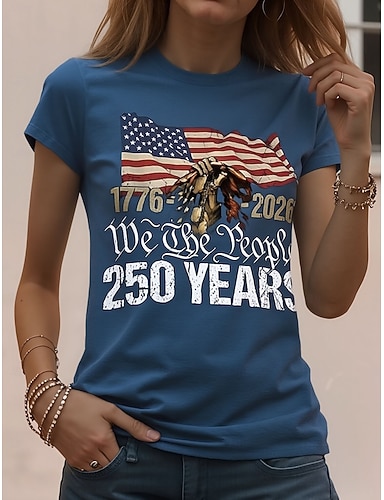 Dia da Independência Aniversário Americano Camiseta Feminina Gráfica Letra Vintage Estilosas Clássica Manga Curta Gola Redonda Estampa Diária Fim de Semana Azul Verão Primavera Outono