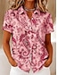 Mulheres Camisa Social Botão para cima Blusa Linho de algodão sintético Botões Imprimir Gráfico Elegante Diário à moda Manga 3/4 Decote V Tops regulares Diário Feriado Para Noite Branco Rosa Vermelho