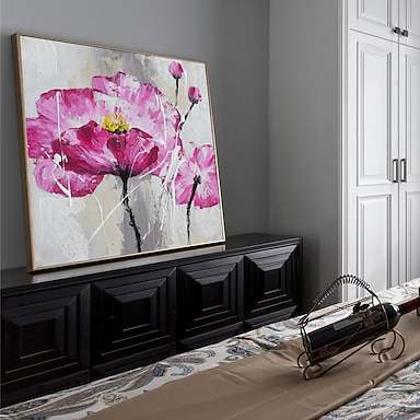 Pintura a óleo pintada à mão arte de parede abstrata flores vermelhas pintura em tela decoração de casa decoração moldura esticada pronta para pendurar