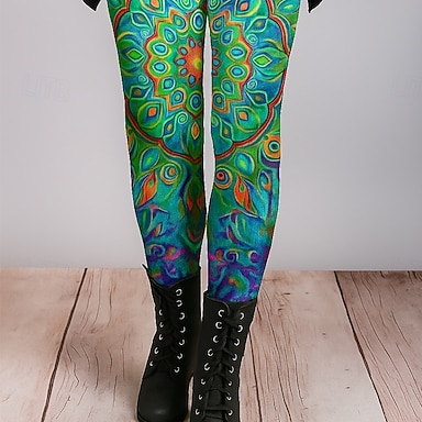 Mulheres Leggings Leggings aconchegantes Férias Vintage Estilo Étnico Comprimento total Cintura Alta Gráfico Estampado Confortável Com Stretch Casual Diário Férias Preto Primavera Fino