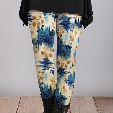Mulheres Calças Leggings Leggings aconchegantes Roupa de rua Casual Comprimento total Natural Flor Cintura elástica Imprimir Confortável Exterior Ao ar livre Férias Feriado Preto Azul cáqui Azul