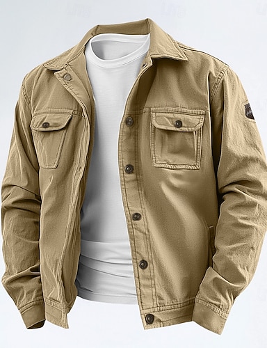 Homens Jaqueta Carga Jaqueta Tática Jaqueta de tarefa Casual Para Noite Jaqueta Corta-Vento Bolso interno Primavera Outono Tecido Moda Clássico Colarinho de Camisa Padrão Azul Marinha cáqui Verde