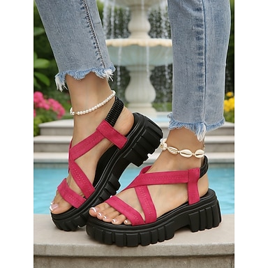 Sandálias esportivas femininas com plataforma – sapatos de verão rosa com tiras e sola grossa, ideais para férias, praia e viagens. &roupa casual