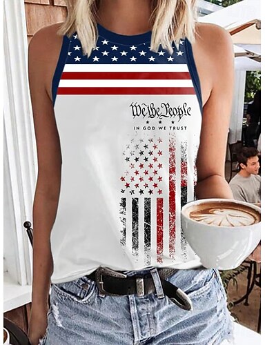 Camiseta Patriótica Feminina do Dia da Independência Gráfica Bandeira Vintage Tropical Estilosa Sem Mangas Gola Redonda Tops Regulares Diários Azul Preto Branco Azul Céu Verde Verão Primavera