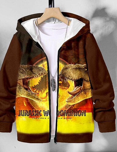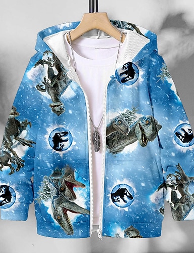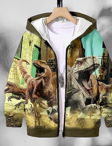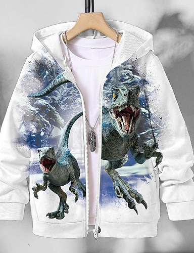 Para Meninos 3D Dinossauro Moletom Casaco Casacos Manga Longa Impressão 3D Outono Inverno Moda Roupa de rua Legal Infantil 3-12 anos Ao ar livre Casual Diário Normal