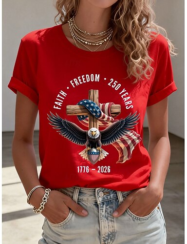 Dia da Independência Aniversário Americano Camiseta Feminina Estampada Gráfica Bandeira Letra Estilosa Clássica Casual Manga Curta Gola Careca Tops Regulares Diário Azul Preto Branco Vermelho Verão
