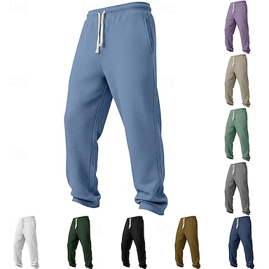 Homens Calças Esportivas Calças Calças largas Calça de moletom de perna reta Calça Waffle Com Cordão Bolsos Cintura elástica Tecido Conforto Macio Ao ar livre Diário Feriado Moda Estilo Clássico