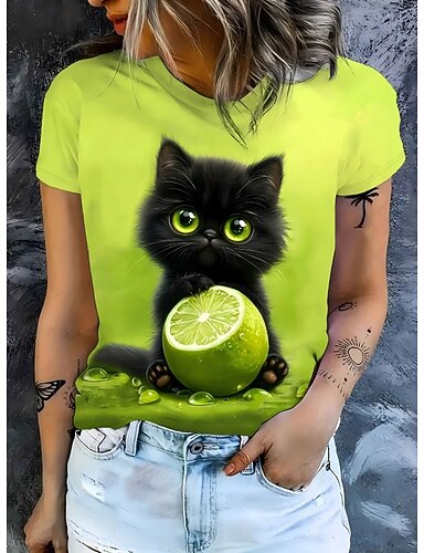 Páscoa Mulheres Camiseta Imprimir Gráfico Animal Desenho Animado Moda à moda Clássico Manga Curta Gola Redonda Tops regulares Casual Diário Final de semana Azul Verde Claro Laranja Verão Primavera
