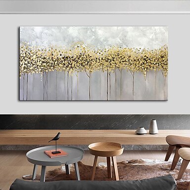 Mintura pintura a óleo de flor de ouro artesanal em tela decoração de arte de parede moderna imagem de paisagem abstrata para decoração de casa rolada sem moldura pintura não esticada