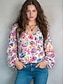 Blusa Feminina Floral Elegante Vintage Moda Manga Longa Decote em V Tops Regulares Estampada para Feriado Final de Semana Botões Branca Rosa Azul Roxo Verde Outono e Inverno