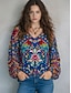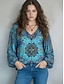 Camisa de Linho Feminina Semelhante Ao Algodão Linho Camisa Estampada Gráfica Paisley Elegante Boemia Vintage Manga Longa Gola V Tops Regulares Diário Feriado Azul Rosa Vermelho Verão Primavera