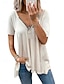 Mulheres Camiseta T-shirt Frufru Ilhó Botões Tecido Moda à moda Clássico Manga Curta Decote V Tops regulares Diário Para Noite Final de semana Branco Amarelo Rosa Azul Céu Verde Verão Primavera