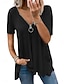 Mulheres Camisa Social Blusa Zíper Tecido à moda Clássico Moderno Manga Curta Decote V Tops regulares Diário Feriado Para Noite Preto Branco Rosa Cinzento Escuro Cinzento Verão Primavera